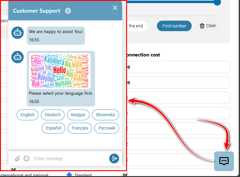 When you click on the chat icon in the bottom right — a chat with a manager will open.