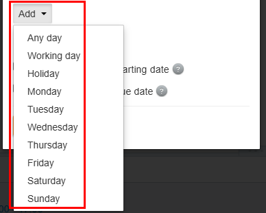 Using the Add button, select the days of the week for which you want to set the schedule, and specify the start and end time of the period during which you want the calls to be handled in a certain way;