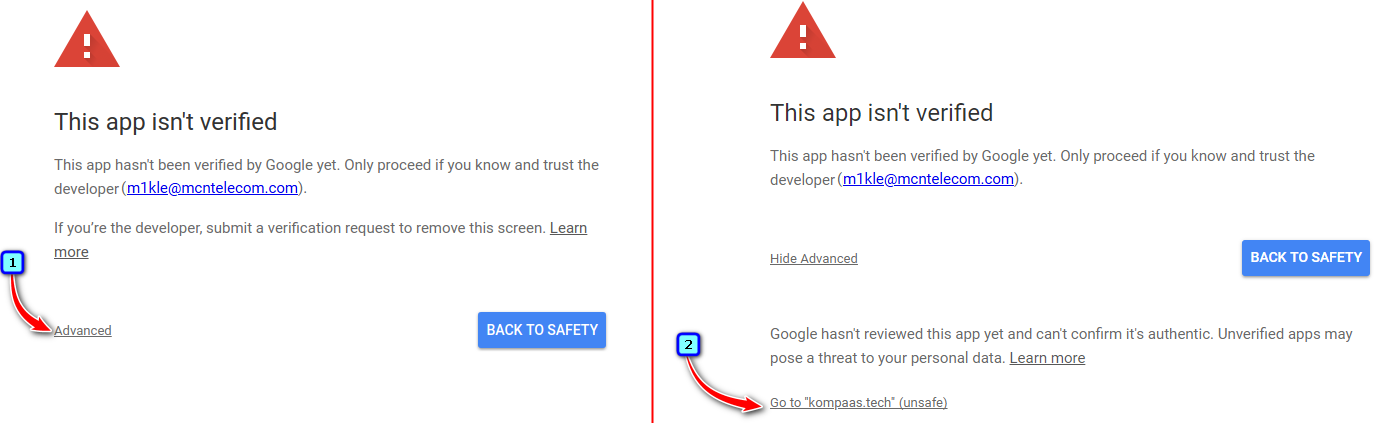 Click 'Advanced', then 'Go to kompaas.tech'.