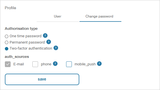 To choose the login mode, click on the profile icon in the top menu on any Personal Account page, then click on the "Authorisation type" tab.