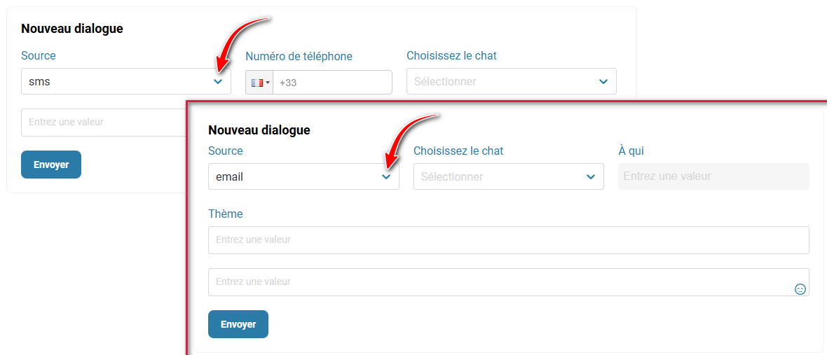 Les dialogues représentent des conversations entre un interlocuteur et un opérateur ou un bot. Dans le cadre de ce service, plusieurs types de dialogues sont prévus: