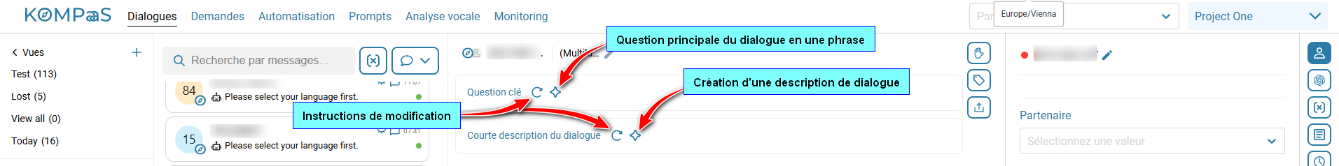 - Attribution de tags (étiquettes) pour faciliter la reconnaissance de la nature du dialogue.