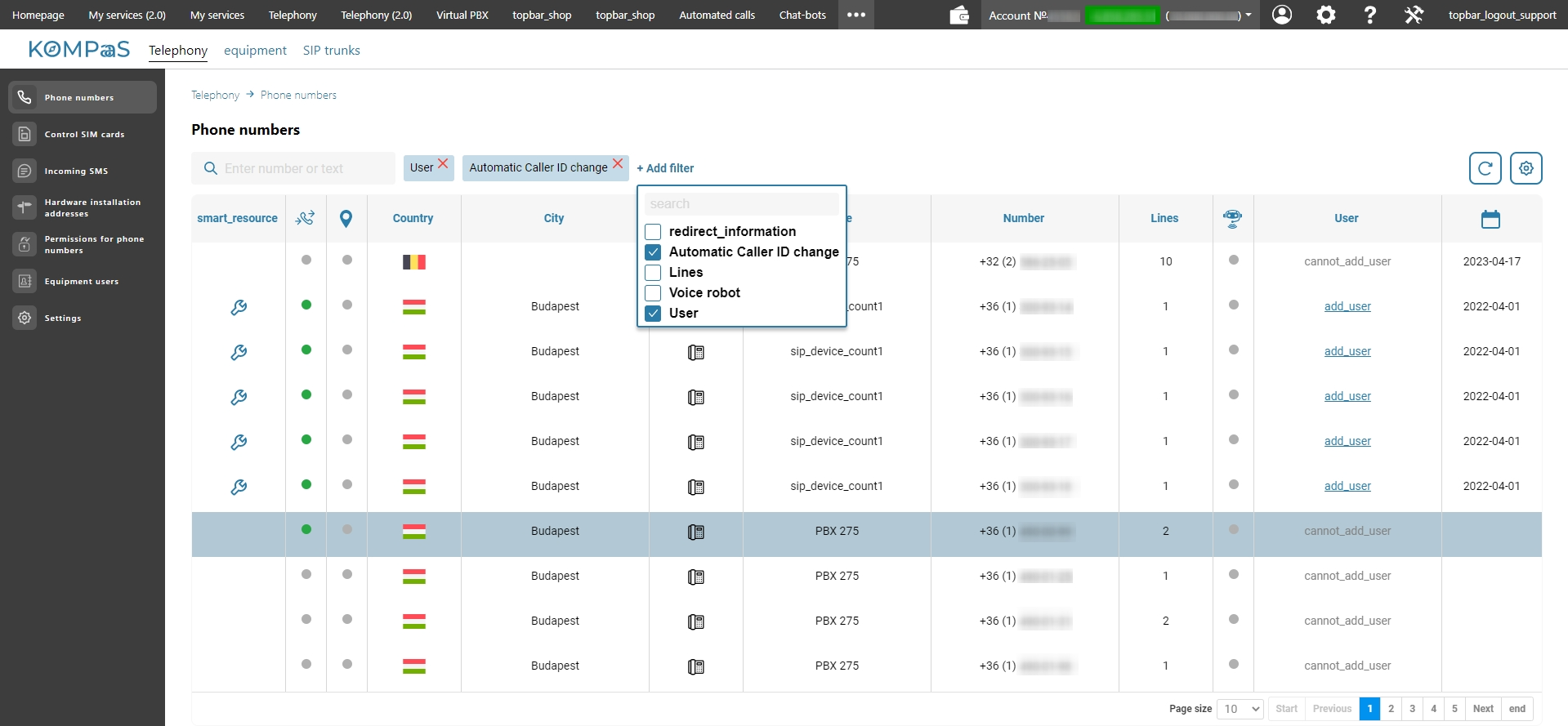 A telefonszámok megtekintéséhez kattintson a "Telefonszolgáltatás 2.0" >> majd "Telefonszámok" menüpontra