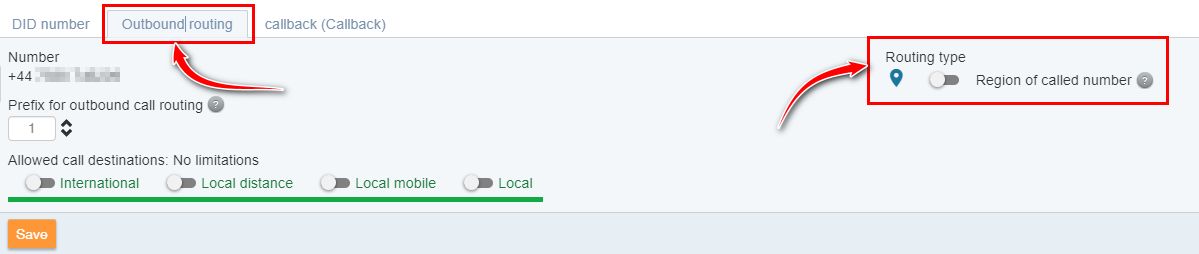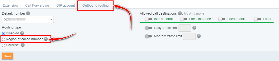 A "Hívott szám régiója szerint" opciót engedélyezni kell az útválasztáshoz használt telefonszámokon és az előfizetői beállításokban.