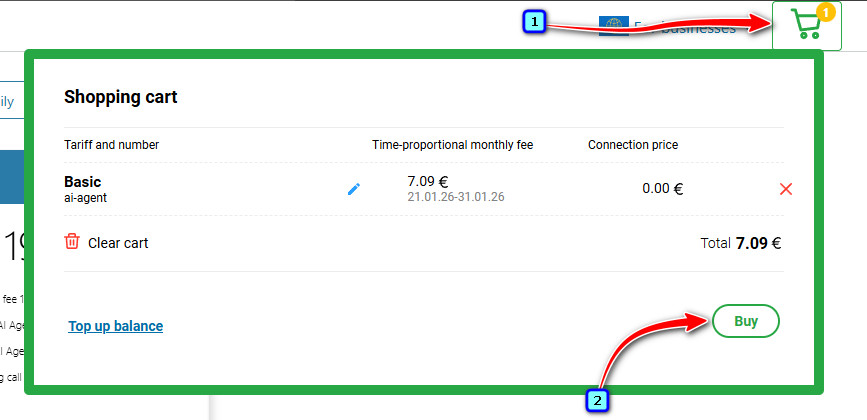✅Megjegyzés: Az AI-ügynök működéséhez virtuális alközpontot és telefonszámot kell csatlakoztatni. Lásd 'How to enable Virtual PBX', 'Enabling a phone number'. |