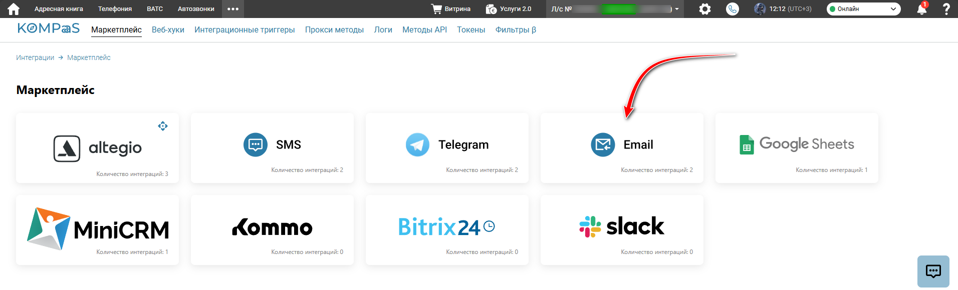 Убедитесь, что у вас есть интеграция в разделе ‘Интеграция’ → 'Маркетплейс'.
