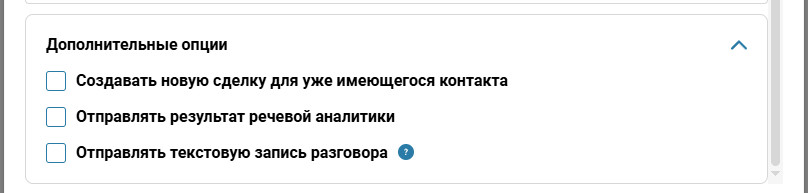 - Также можно настроить правила обработки звонков — создавать сделку, лид, контакт или не создавать ничего.